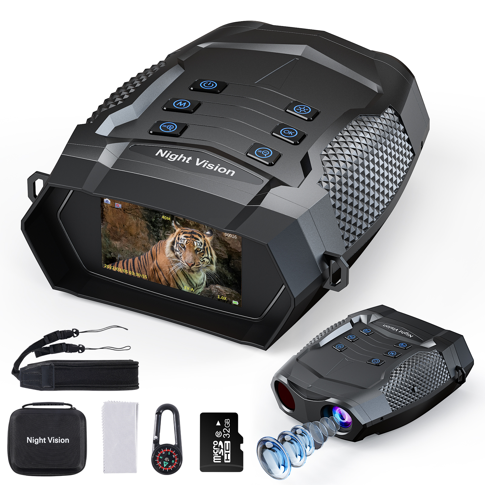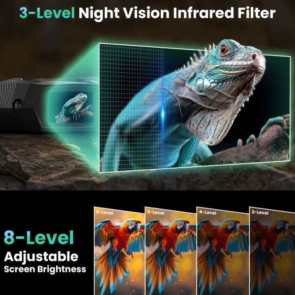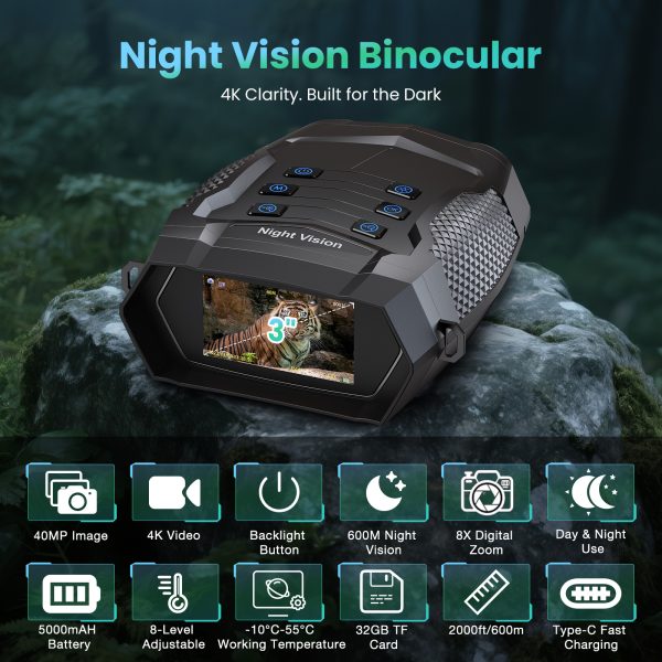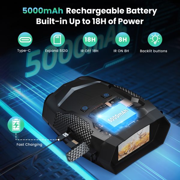 The 5000mAh rechargeable battery keeps you going with up to 18 hours of use, while the 3-inch HD screen, 8X zoom, and day/night dual mode make operation effortless under any condition.