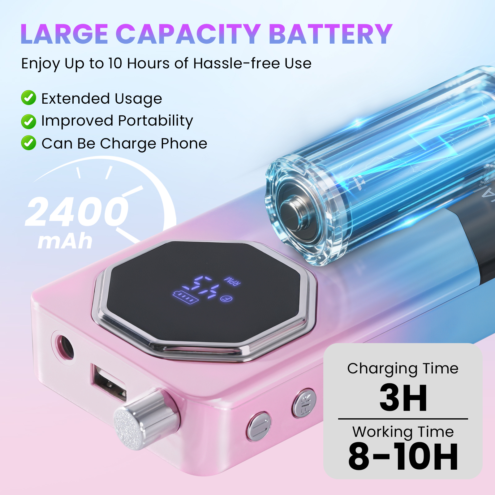 🔋 Cordless & Rechargeable E-File – Long Battery Life & Portability