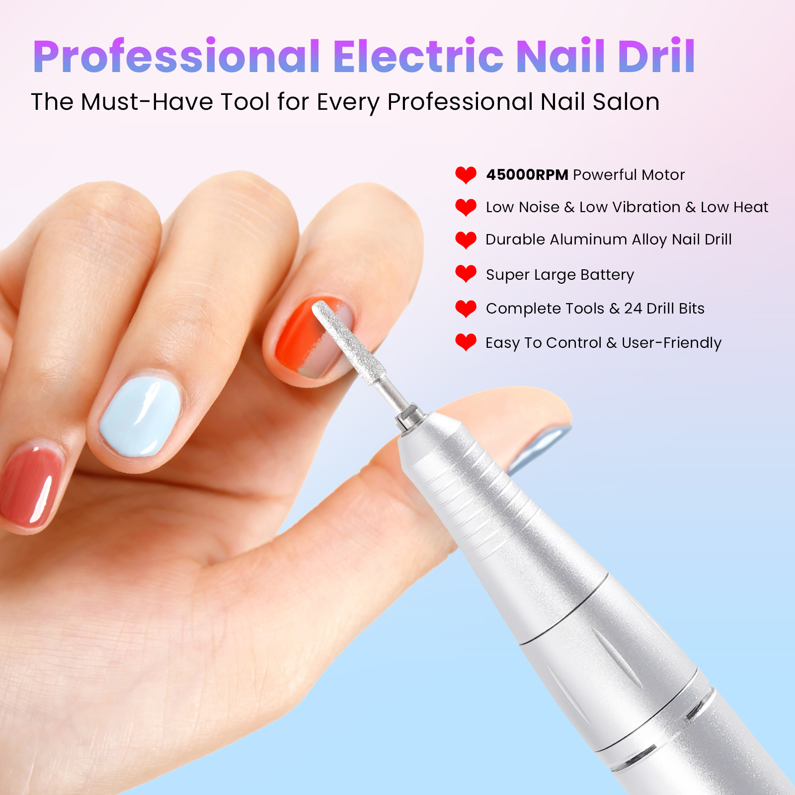 FETERVIC Professional Electric Nail Drill – 45000 RPM Rechargeable Nail File for Acrylic & Gel Nails