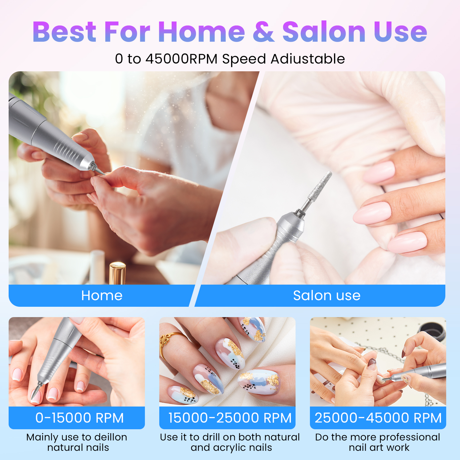 💅 Powerful 45000 RPM Nail Drill – Adjustable Speed & Multi-Functional Use